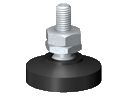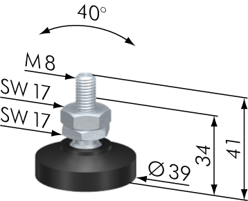 Height adjustable foot for levelling machines and structures. Any tipping is compensated by a ball and a socket.