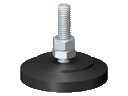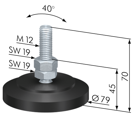 Height adjustable foot for levelling machines and structures. Any tipping is compensated by a ball and a socket.