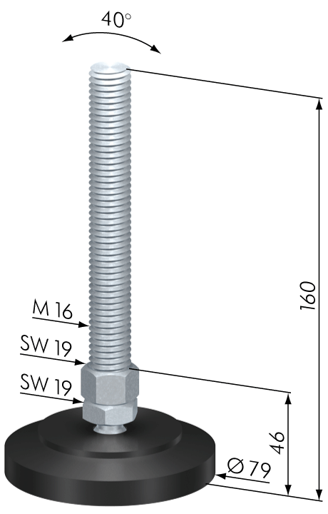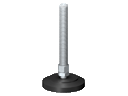 Height adjustable foot for levelling machines and structures. Any tipping is compensated by a ball and a socket.