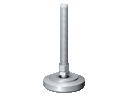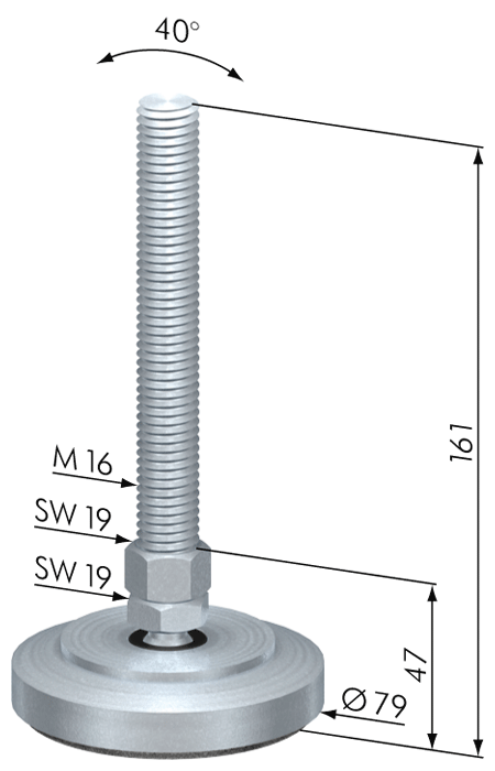 Height adjustable foot for levelling machines and structures. Any tipping is compensated by a ball and a socket.