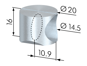 - bore hole for the fastener housing: Ø20mm, 20mm from the profile end, 16mm deep
