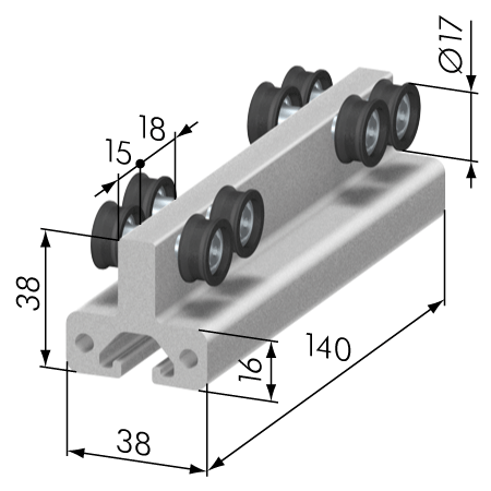 The carriage rollers have no excentric adjustment. The rollers are preset to suit the internal guidance form of the track profile.