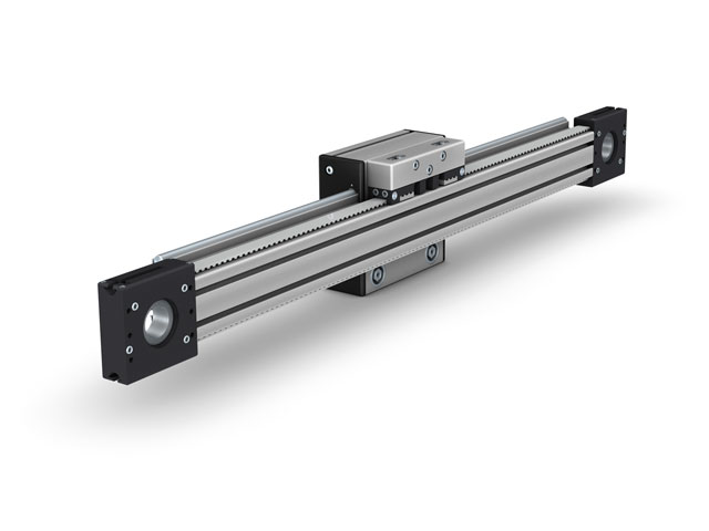 Complete linear axis including guide profile, carriage, wiper and lubrication system, deflection with customised drive shaft connection.