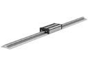 Recirculating ball slide system with plastic ball bearings. The carriage is guided by four guidance bores which are switched by plastic end caps attached to each end of the carriage.
