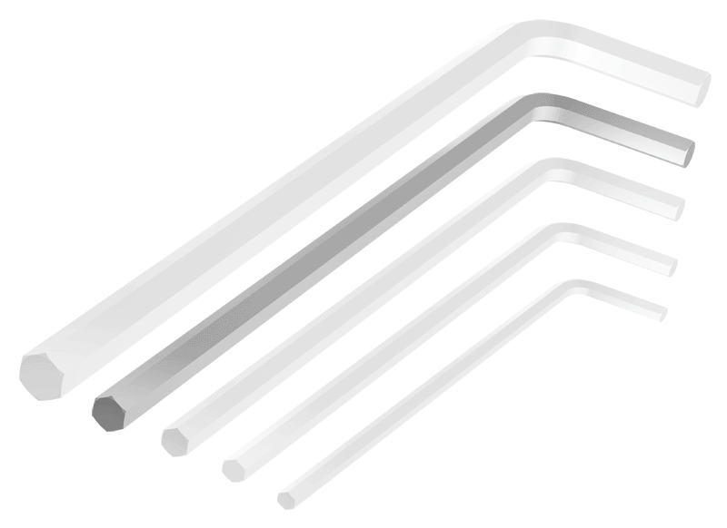 Metric tools and hexagon keys to fasten all hexagon screws.