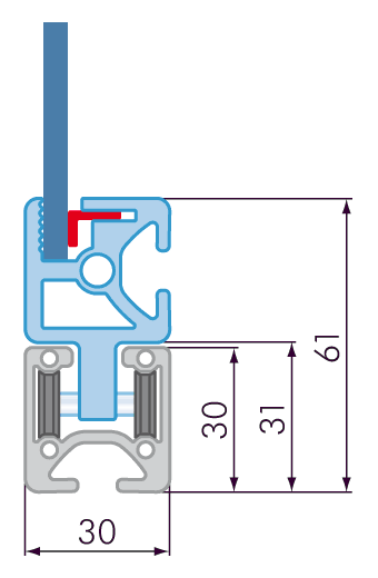 C-Führungen mit Kunststoffrollen. C-Führungen benötigen keine Schmierung und sind eine kostengünstige Alternative zu Stahlführungen.