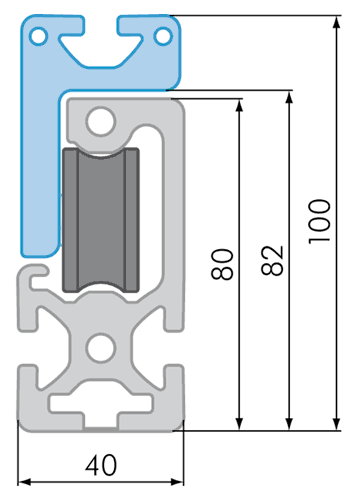 C-Führungen mit Kunststoffrollen. C-Führungen benötigen keine Schmierung und sind eine kostengünstige Alternative zu Stahlführungen.