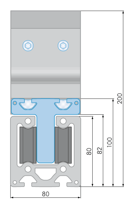C-Führungen mit Kunststoffrollen. C-Führungen benötigen keine Schmierung und sind eine kostengünstige Alternative zu Stahlführungen.