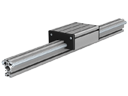 Komplette Linearachse inklusive Führungsprofil, Laufwagen, Abstreif- und Schmiersystem.