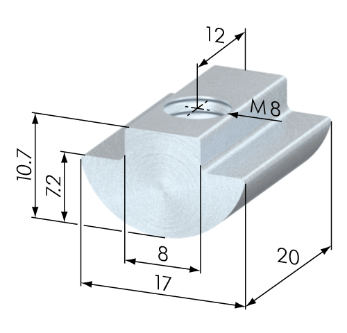 Positionierung des Nutensteins durch ein federndes Druckstück (Kugel) an jeder beliebigen Stelle in der Profilnut. Aufgrund der hohen Auflagefläche des Nutensteins in der Profilnut für grössere Kräfte geeignet.
