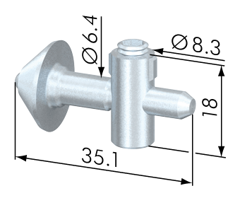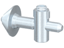 Universell einsetzbarer Standardverbinder. Der einschiebbare Zuganker wird durch ein federndes Druckstück in der Profilnut positioniert. Der Zentralspanner SV enthält zusätzlich eine Verdrehsicherung.