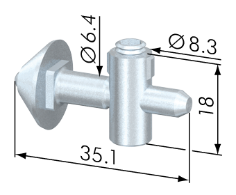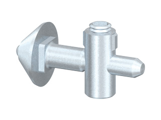 Universell einsetzbarer Standardverbinder. Der einschiebbare Zuganker wird durch ein federndes Druckstück in der Profilnut positioniert. Der Zentralspanner SV enthält zusätzlich eine Verdrehsicherung.