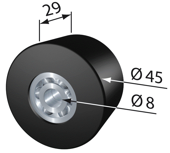 Zur Herstellung von Laufwagen, wobei die Tragrollen RM und RS in der Profilnut geführt werden.