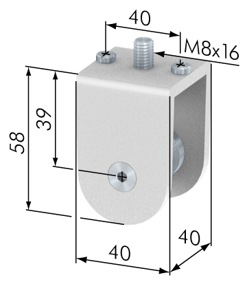 Aufnahme von Tragrollen zur stirnseitigen Befestigung an Profilen.