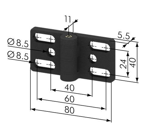 Als Türscharnier bei mittleren Belastungen. Das Scharnier 40/40 PA dient zur Verbindung zwischen Profilen der Baureihe 40.