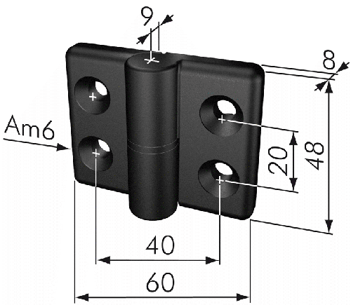 Als Türscharnier bei mittleren Belastungen zur Anbringung an Schutzeinrichtungen.