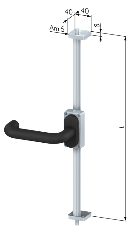 Verriegelungsmechanismus für eine mit einem Profil 40x40 aufgebaute Tür.