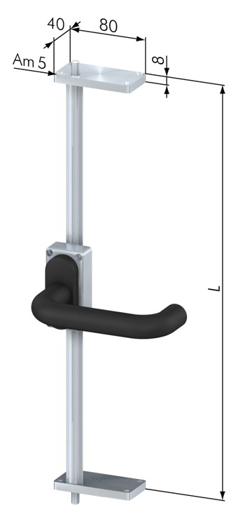 Verriegelungsmechanismus für eine mit einem Profil 40x 80 aufgebaute Tür.